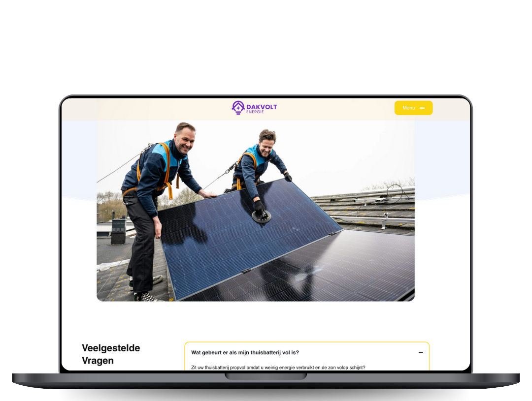 Dakvolt Energie had een website die niet goed liet zien wie ze zijn: een technisch, modern en betrouwbaar bedrijf in zonnepanelen en energieoplossingen. De eerdere website liet te weinig professionaliteit zien en bezoekers raakten snel het overzicht kwijt.