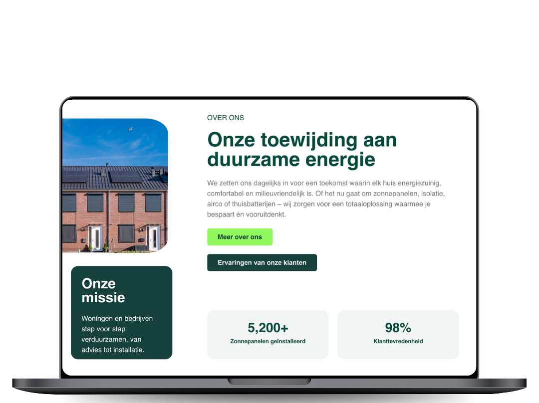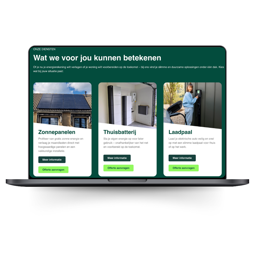 Daarnaast moest de website de betrouwbaarheid uitstralen van een technisch en duurzaam installatiebedrijf met echte ervaringen, resultaten en cijfers.