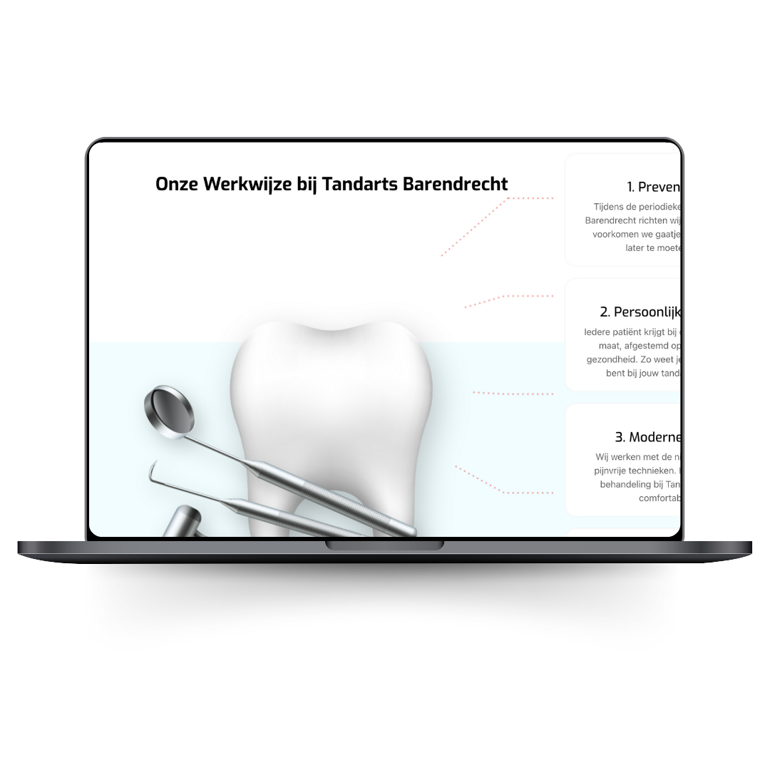 Dankzij de SEO-optimalisaties worden we nu vaker gevonden op ‘Tandarts Barendrecht’ en zien we een toename in inschrijvingen via het online formulier. Patiënten geven regelmatig aan dat ze de website duidelijk en gebruiksvriendelijk vinden.
